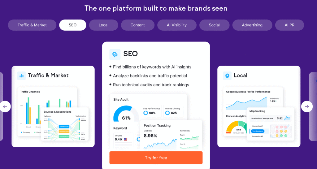 | Tracks visibility across multiple AI platforms from one dashboard | More focused on AI visibility than traditional SEO workflows |