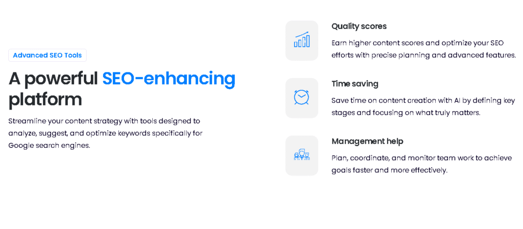 | Creates high-quality, SEO-ready content | Needs integrations for full SEO support |