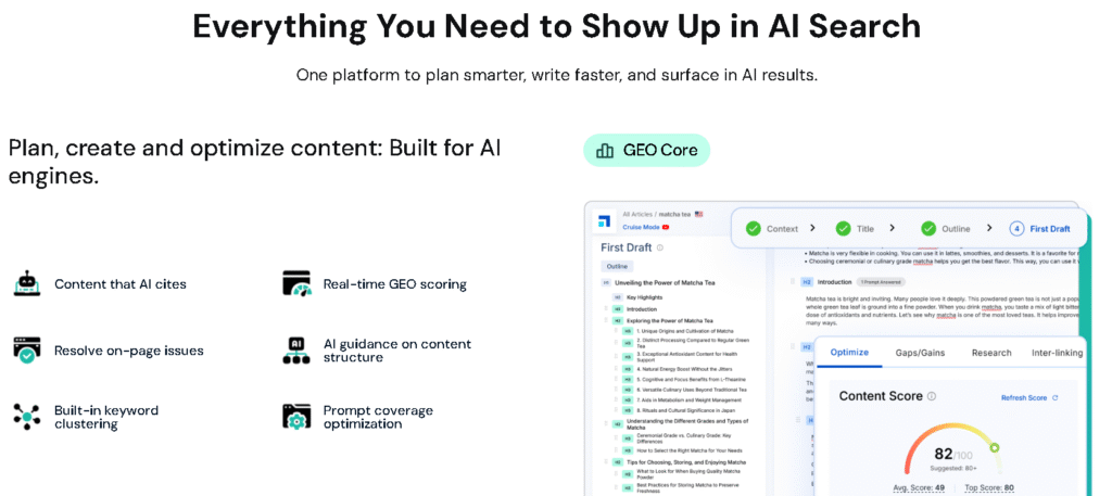 Scalenut is an all-in-one AI-powered SEO tool combining content research, keyword clustering, and AI writing. It’s great for startups or small businesses looking to manage end-to-end content creation—from topic ideation to execution with a single tool.