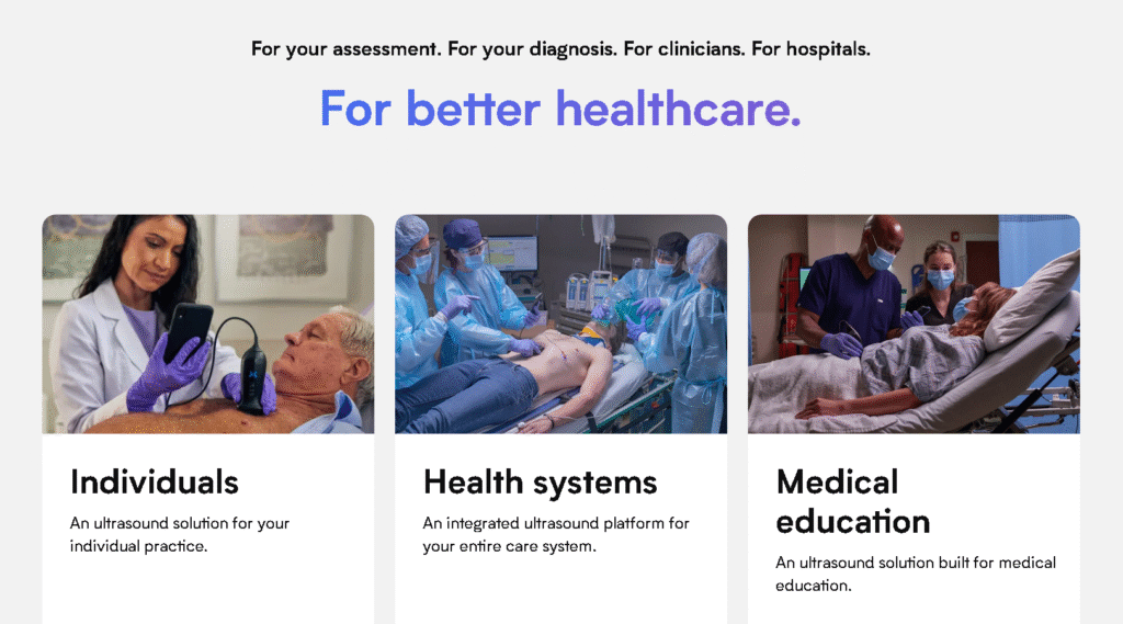 Butterfly Network offers the world’s first handheld, AI-powered ultrasound device—Butterfly iQ+. This tool enables point-of-care ultrasound with built-in AI to guide image capture, detect abnormalities, and support remote diagnostics. It’s especially helpful in rural environments or small clinics that need portable imaging.