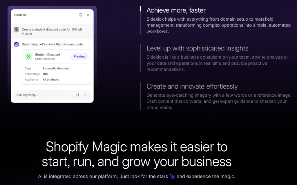 | Shopify Magic | AI product descriptions | Free with Shopify | Writes optimized listings |