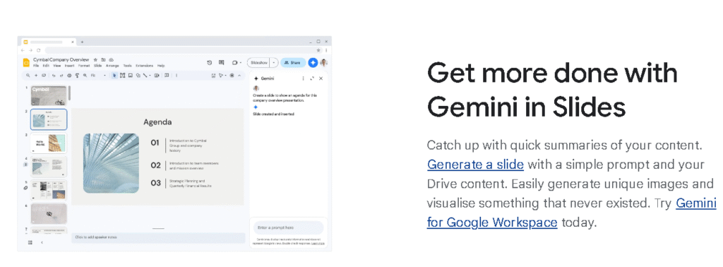 Explore Gemini AI for Google Slides.