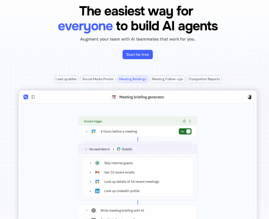 Gumloop is the tool I use when clients want AI driven automations. It works like an AI research assistant. One of my content clients used Gumloop to automate competitor research, article briefs, and content structure. It saved them hours every week. Gumloop is perfect for tasks where thinking and analysis are required, not just simple triggers.