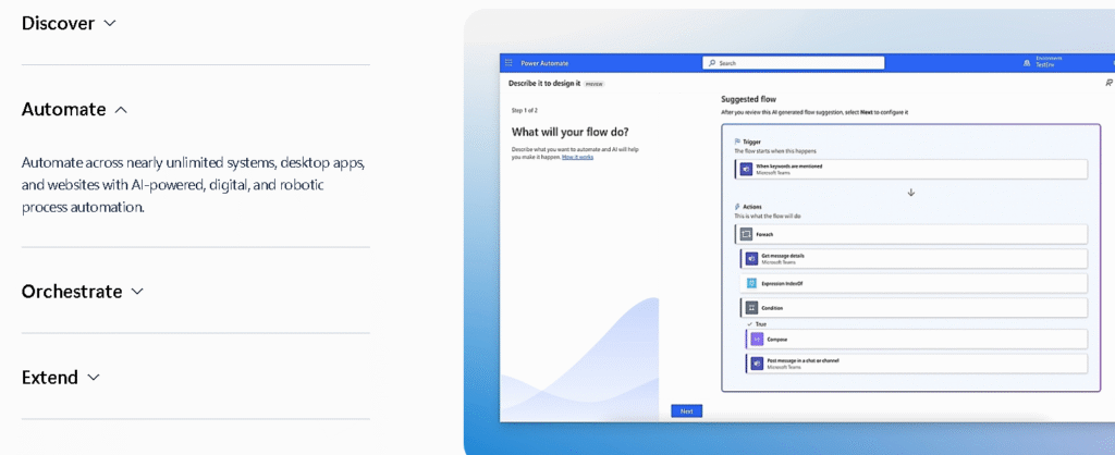 Power Automate works best for companies using Office 365, Teams, Outlook, SharePoint, and other Microsoft apps. It is very powerful but not very beginner friendly. It automates almost anything inside Microsoft’s ecosystem which makes it ideal for corporate clients.