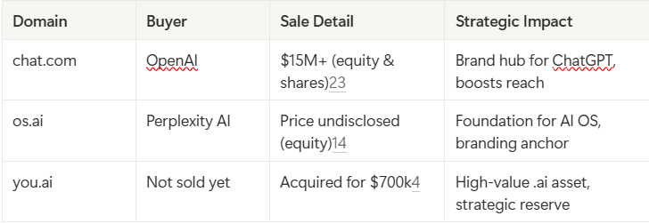 - AI OS as the Next Frontier: As Perplexity, OpenAI, and others race to build foundational platforms for the AI era, domain acquisitions like os.ai serve as both branding moves and statements of intent.