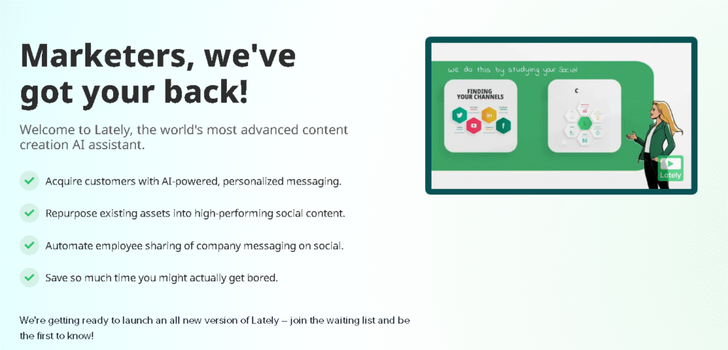 | Lately.ai | Custom pricing | Agencies, Brands | AI social post creator & repurposing | lately.ai |
