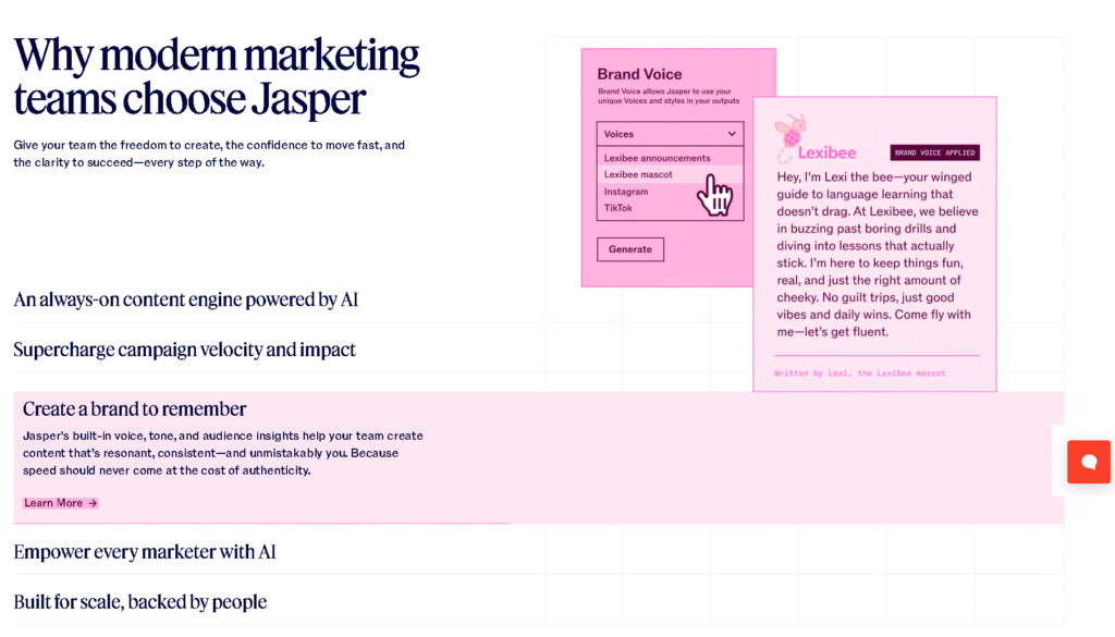 Jasper AI is an advanced AI-powered content creation platform that goes beyond blog writing it also excels at generating high-converting social media posts, captions, and marketing copy. By leveraging templates optimized for platforms like Instagram, Twitter, and LinkedIn, Jasper helps marketers create engaging, on-brand content at scale.