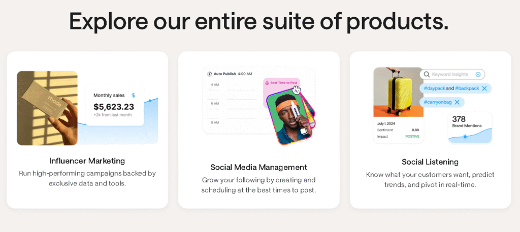 Later is a well-known social scheduler that now offers AI-powered hashtag suggestions, user interaction insights, and platform-specific post suggestions to help optimize your Instagram and TikTok strategy.
