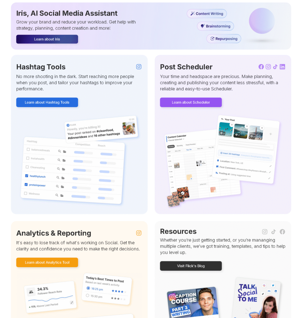 Flick AIStarts $11/monthInstagram marketersAdvanced hashtag & caption AIflick.social