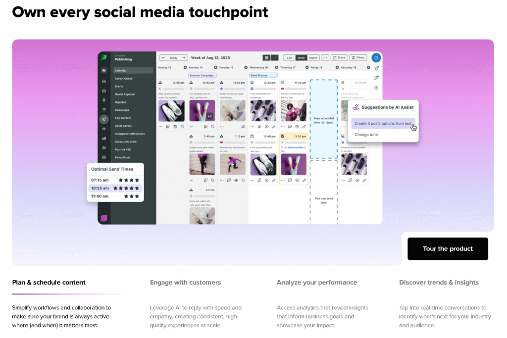Sprout SocialStarts at $249/monthMedium-large businessesSmart insights + AI message taggingsproutsocial.com
