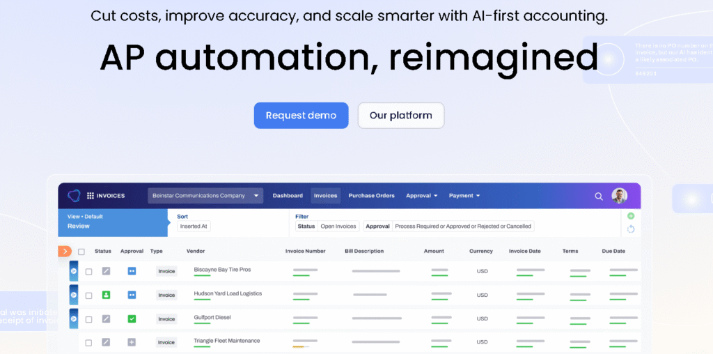 Vic.ai is one of the most advanced AI accounting software platforms focused on automating invoice processing and expense management. It uses machine learning to analyze, approve, and post invoices automatically drastically cutting manual entry time for finance teams.